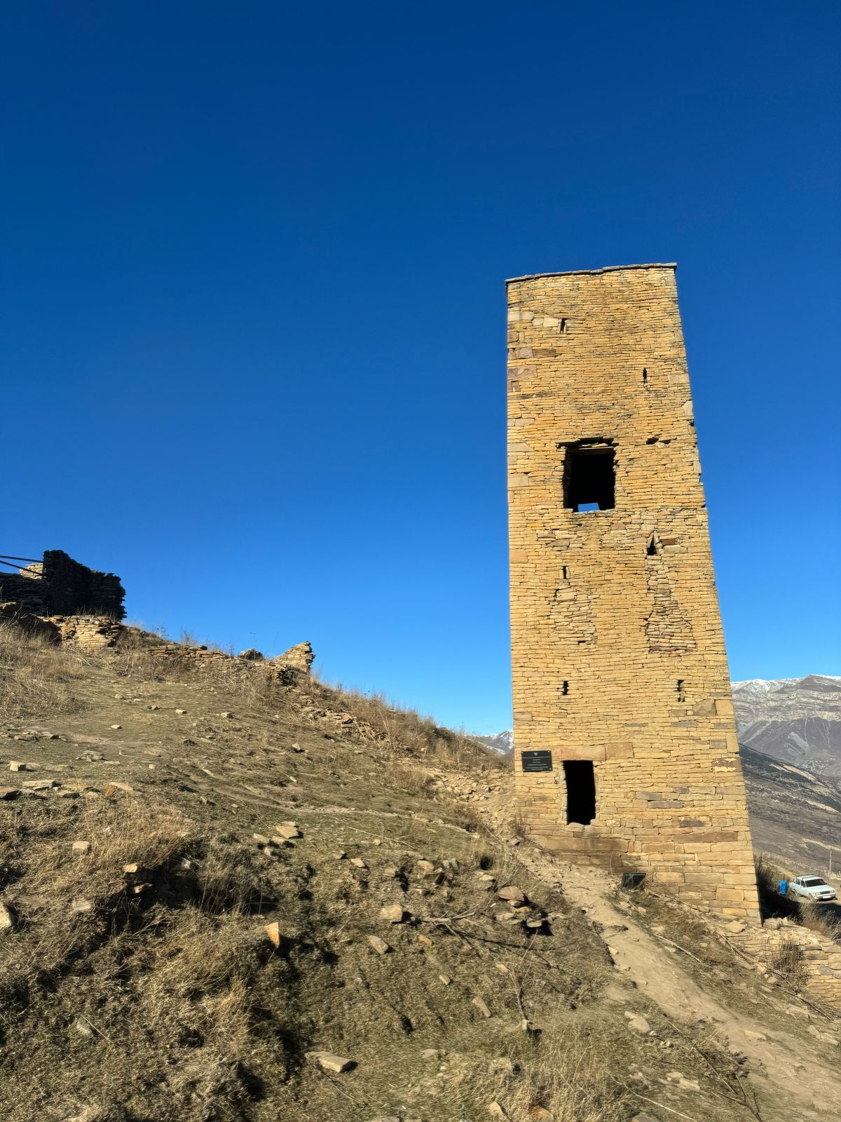 В основном мы перемещаемся на комфортабельном автомобиле. Пешие переходы с рюкзаками не предусмотрены. Это под силу любому человеку со средним здоровьем. Самым сложным за все время тура будет подъем пешком к селению Гамсутль. Длительностью около 1-2 часов (в зависимости от темпа группы).